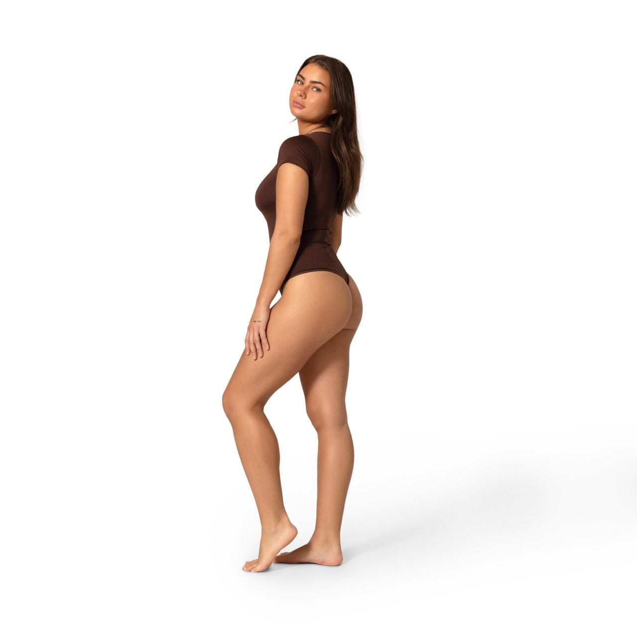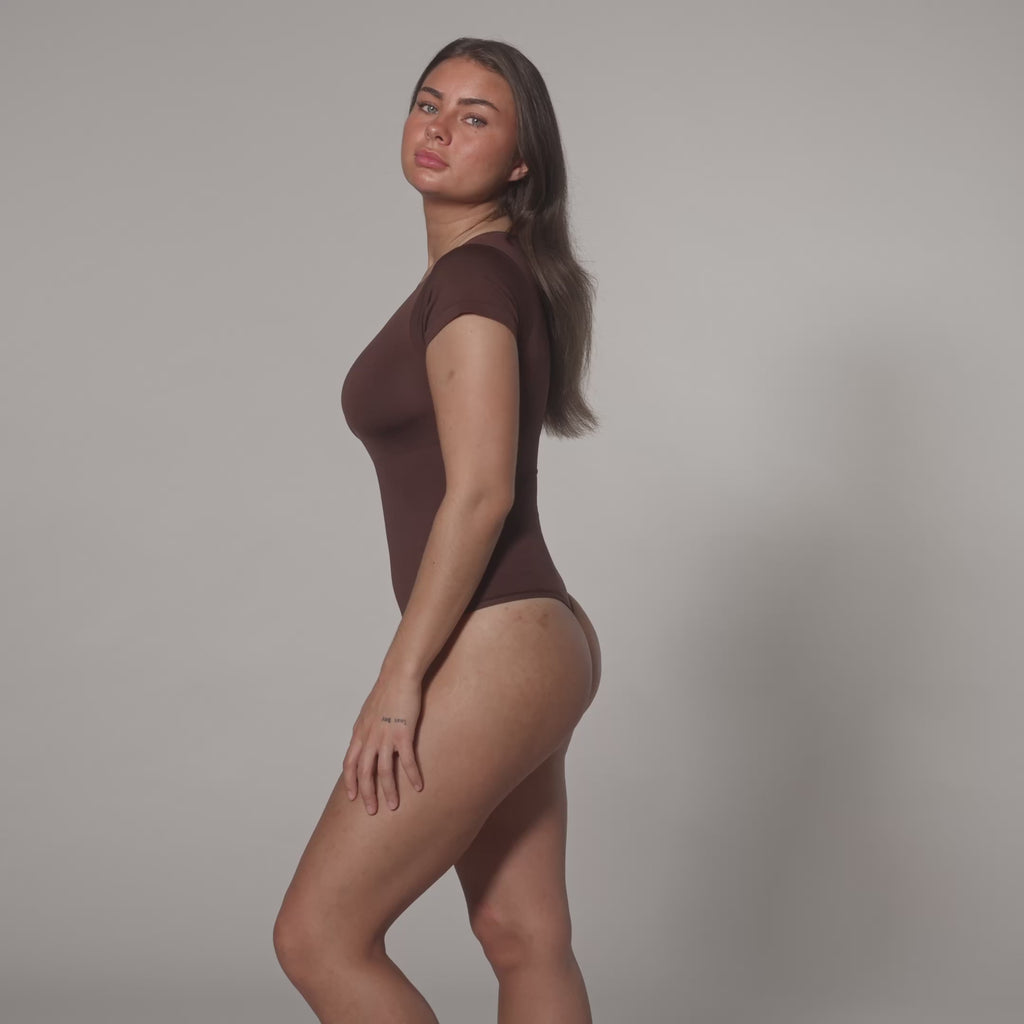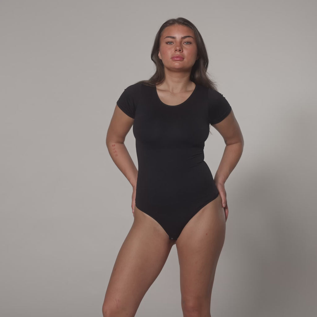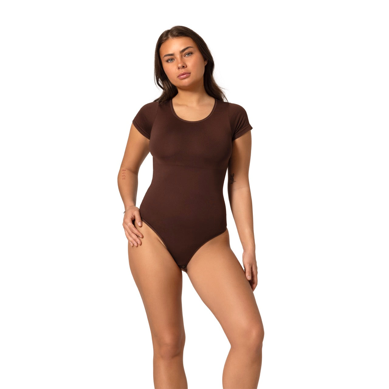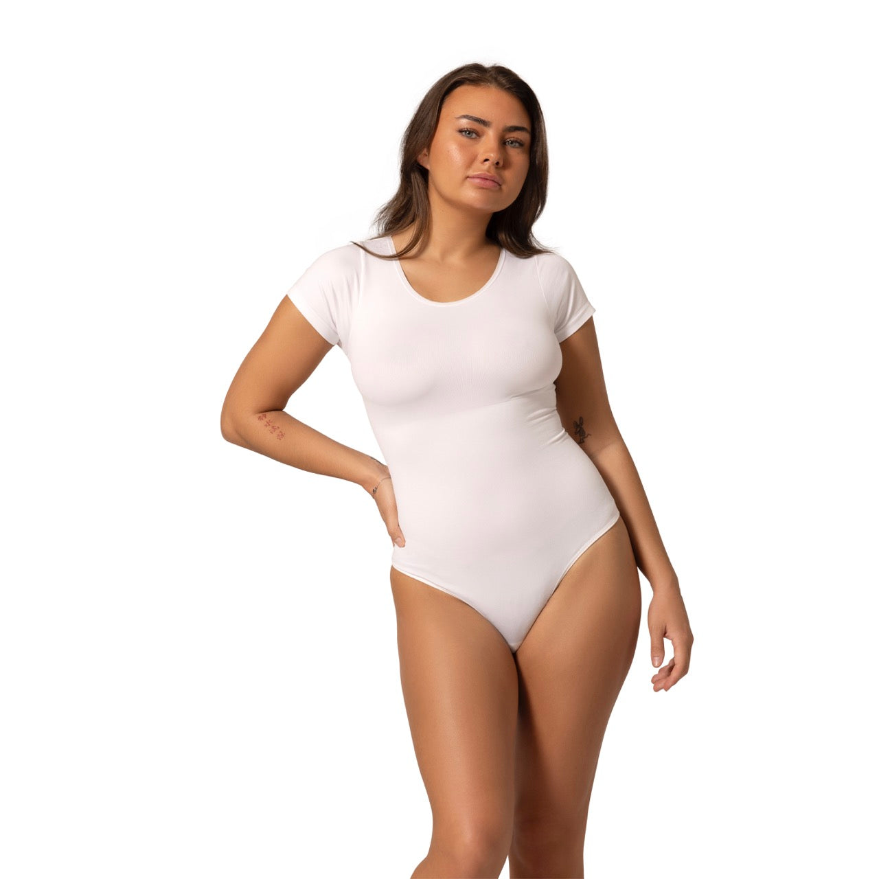 En sömlös t-shirt-bodysuit med stöd och en stilren design; skapad för att ge effektiv shaping över mage och midja utan att tumma på komfort. Med sin höga andningsförmåga och täckande passform är det här ett plagg du vill bära hela dagen, varje dag.